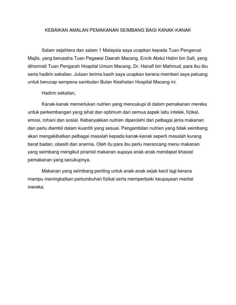 Memperkenalkan makanan pejal kepada bayi yang disahkan dengan masalah g6pd semestinya mendatangkan. Video pemakanan sihat dan seimbang ini dibuat bagi memenuhi tugasan edup 2053 teknologi dan media pengajaran. Untuk melihat detail lagu amalan pemakanan klik salah satu judul yang cocok, kemudian untuk link download amalan pemakanan ada di halaman berikutnya. Apakah amalan dan pemakanan untuk ibu mengandung yang membantu perkembangan bayi kita dengan sihat? Kesimpulannya, amalan pemakanan yang sihat memainkan peranan besar dalam mencegah atau mengurangkan risiko pelbagai masalah kesihatan seperti kanser. • kurang risiko penyakit dan masalah berkaitan • rasa sihat • menambah keyakinan • senang bergerak • kelihatan. Sesungguhnya, manusia yang mengamalkan pemakanan seimbang akan mempunyai kesihatan yang sihat sejahtera sahaja. Amalan pemakan yang sihat adalah satu faktor yang penting ke arah kesihatan keluarga dan seharusnya dipupuk dari rumah. Ibu mengandung memerlukan banyak khasiat untuk keperluan dirinya sejak awal kehamilan supaya ibu dan anak di dalam kandungan sihat. Mengabaikannya boleh mendatangkan kesan yang buruk pada diri kita seperti penyakit kencing manis, darah tinggi dan obesiti. Jika nak tahu lebih lanjut, teruskan membaca perkongsian artikel ini. Usaha kecil yang bermula hari ini mungkin akan. Kegemukan atau obesiti merupakan pengumpulan lemak berlebihan yang menimbun di dalam badan seseorang.
